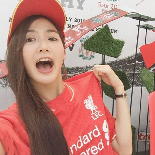 และไม่ใช่แค่ในไทยเท่านั้นนะคะ ล่าสุดนี่ถึงขั้นบินไปมาเลเซียเพื่อไปดูการแข่งขันกันเลยทีเดียว พอไปถึงก็ไม่รอช้าบุกร้านขายของที่ระลึกจากสโมสรลิเวอร์พูลทันที พร้อมโพสต์รูปยั่วแฟนๆ กันด้วย แต่ที่เด็ดสุดคือได้เซลฟี่คู่กับนักเตะในดวงใจแทบจะครบทั้งทีมอีกแล้ว! งานนี้ไม่รู้ว่าแฟนบอยของสาวมายด์จะอิจฉาใครดีนะคะเนี่ย คนนึงก็น่ารัก คนนึงก็นักเตะที่ชื่นชอบ แหม เลือกไม่ถูกเลย