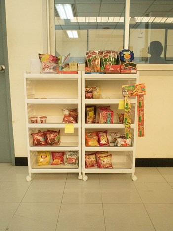 ส่วนเรื่องไปเรียนก็ตื่นไปกินข้าวให้ทันก่อนแปดโมง ถ้าวันจันทร์กับศุกร์จะไปเรียนที่บางมด ขึ้นรถไมโครบัสมหาลัยไป ส่วนวันอังคารถึงพฤหัสบดีเรียนที่ตึกบางขุนเทียน เข้าแถว 8.15 น. เริ่มเรียนประมาณ 9 โมงถึงเที่ยง พักกินข้าวแล้วขึ้นมาเรียนต่อบ่ายโมงถึงสี่โมงเย็น เรียนวันละ 2 วิชาเองจ้า จิ๊บๆ ส่วนเรื่องขนมขบเคี้ยวก็มีให้เรื่อยๆ โดยคณะกรรมการนักเรียนในแต่ละปีจะเปิดสหกรณ์เอาไว้ เป็นร้านซื่อสัตย์ หยิบขนมเองจ่ายเงินเอง