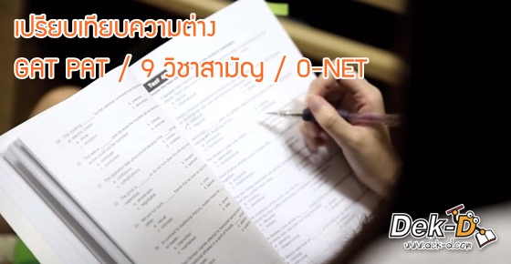 ถ้านับจากวันนี้ เด็ก 59 ผ่านมาแค่การสอบ GAT PAT ยังเหลืออีก 2 สนามที่จะต้องไฝว้กันต่อไปนั่นก็คือ 9 วิชาสามัญ และ O-NET ที่จะเกิดขึ้นในปลายเดือนธันวาคมและกุมภาพันธ์ตามลำดับ การสอบทั้ง 3 สนามนี้ มี สทศ. เป็นผู้ดูแลทั้งหมดเลยค่ะ ไปดูความแตกต่างที่สรุปมาให้ดู ตามนี้เลยค่ะ