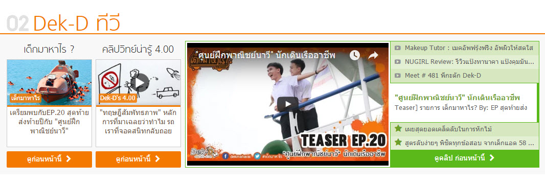 นอกจากนี้ ยังมีรายการอื่นๆ ที่น่าสนใจอีกมากมายเลยค่ะ ติดตามชมได้ที่หมวด 02 Dek-D ทีวี ที่หน้าเว็บเลยค่ะ