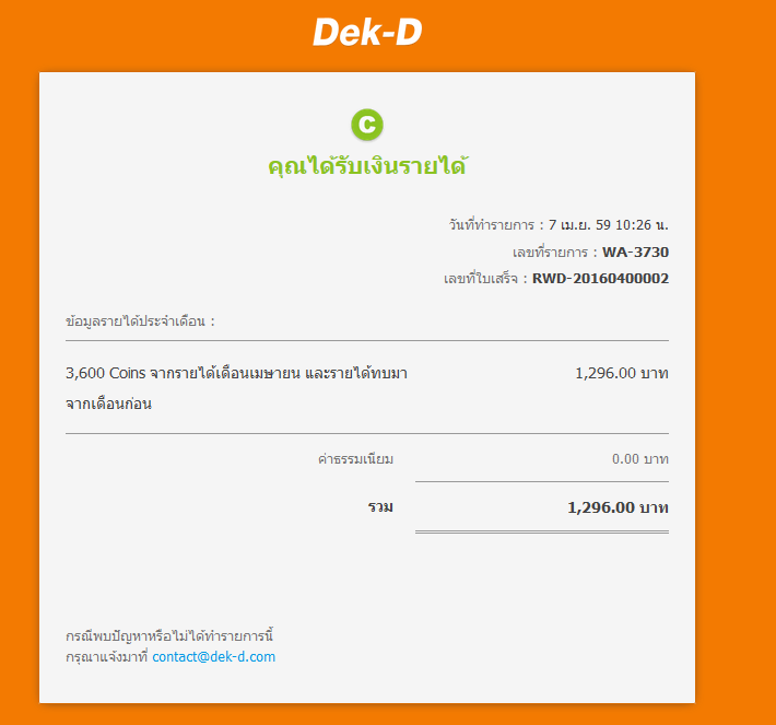 และเมื่อผ่านการพิจารณา นิยายเข้าสู่ระบบการขาย มีคนมอบ Coin ให้นักเขียน ยอด Coin เหล่านั้นจะสะสมไปจนถึงปลายเดือน ทางทีมงานเขาก็จะโอนเงินให้นักเขียน (แจ้งบัญชีกับระบบไว้แล้ว) ซึ่งดีมากๆ เลยครับ เป็นรายได้ที่สามารถเกิดขึ้นได้จากการเขียนนิยาย นี่เป็นช่องทางหนึ่งที่แม้แต่เยาวชนก็ทำได้ ขอให้เขียนเรื่องราวที่สามารถขายได้ และถูกต้องกับกฎ ก็ได้เงินแล้ว