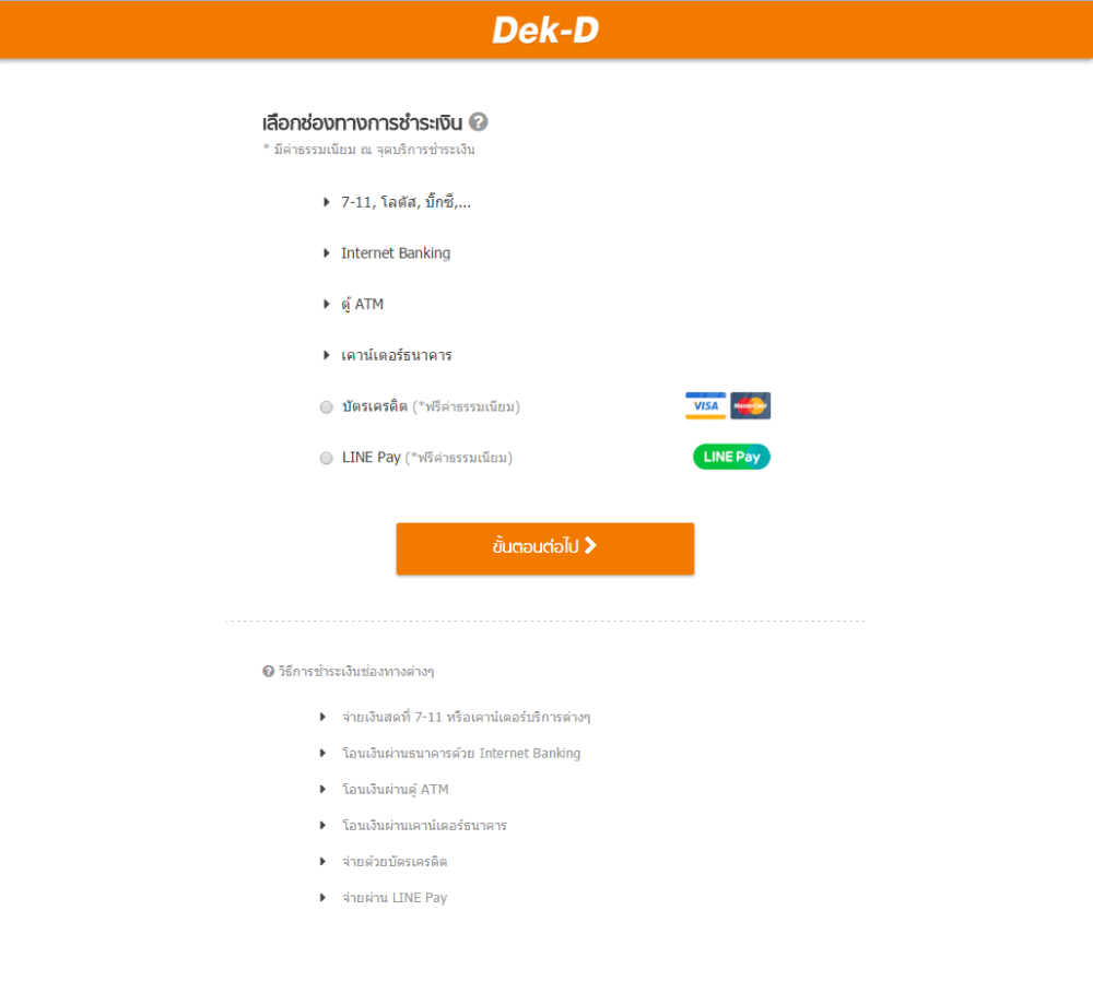 5. เลือกรายการที่จะชำระ และกดขั้นตอนต่อไป ซึ่งเมื่อกดเข้าไปแล้ว ทางระบบเขาได้แยกเอาไว้ให้โดยละเอียดแล้วว่าจะชำระธนาคารไหน หรือที่ไหน แล้วกดขั้นตอนต่อไป มันก็จะมาโผล่ตรงส่วนที่ให้เรา ใส่ชื่อ นามสกุล / อีเมล / เบอร์โทรติดต่อ เราก็กรอกรายละเอียดไป และกดดำเนินการชำระเงิน เขาก็จะออกใบเสร็จส่วนนั้นให้เรานำไปดำเนินการชำระเงินได้เลยครับ