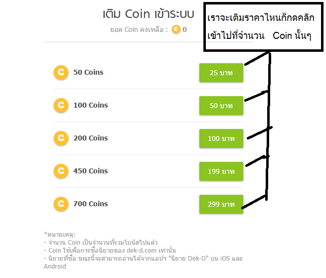 ในส่วนของนักอ่าน : ในกรณีที่เราซื้อนิยายราคา 100 coin ผ่านเว็บจะต้องใช้เงิน 50 บาท