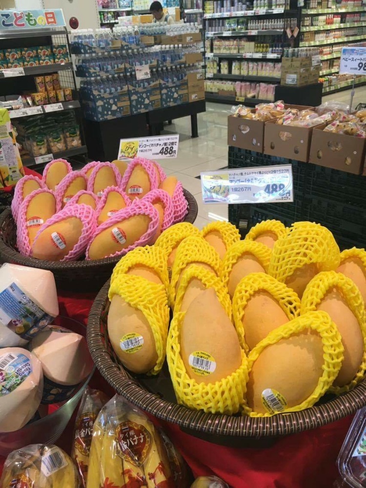 ตามมาด้วยมะม่วงกันครับ ที่ญี่ปุ่นโดยมากจะเป็นมะม่วงจากฟิลิปปินส์ครับ ราคาก็ขายเป็นลูก ลูกละ 398 เยน หรือประมาณ 120 บาทครับ แอบเสียดายที่ตอนไปถ่ายไม่มีมะม่วงไทยวางขาย มะม่วงบ้านเราก็มักมาวางขายอยู่เรื่อยๆ ครับ ราคาก็อยู่ที่ประมาณลูกละ 300-500 เยนหรือ 90-150 บาทครับ