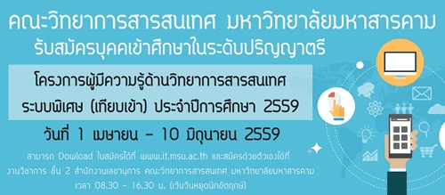 โครงการนี้รับ ปวส. สอบเทียบความรู้เข้าระดับปริญญาตรี (www.it.msu.ac.th)
