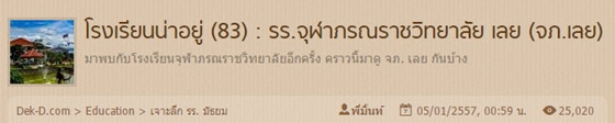 มาต่อกันที่โรงเรียนจุฬาภรณราชวิทยาลัย เลย หรือ จภ.เลย เป็นอีกโรงเรียนในฝันของใครหลายๆ คน ถึงนักเรียนที่นี่จะไม่เยอะ แต่ก็อยู่กันอย่างอบอุ่น และโรงเรียนก็น่าอยู่มากๆ ด้วย ไปดูรายละเอียดกันเลย (คลิก)
