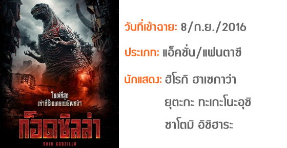 หลังจากปล่อยให้โลกสงบสุขเป็นเวลา 60 ปี สัตว์ประหลาดในตำนานอย่าง "ก็อดซิลล่า" ก็ได้ปรากฏตัวขึ้นมาบนโลกอีกครั้งหนึ่ง กลับมาคราวนี้ ตัวใหญ่กว่าเดิม ร้ายกว่าเดิม และมีพลังทำลายล้างขั้นสูงสุด จนทำให้ญี่ปุ่นพังราบเป็นหน้ากลอง แล้วรัฐบาลญี่ปุ่นจะรับมือกับสัตว์ประหลาดตัวยักษ์นี้ได้หรือไม่ โลกมนุษย์จะรอดพ้นจากหายนะครั้งใหญ่นี้ได้อย่างไร ต้องไปลุ้นกันค่ะ