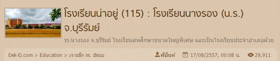 โรงเรียนนางรอง เป็นโรงเรียนขนาดใหญ่พิเศษ และเป็นโรงเรียนประจำอำเภอเช่นกันค่ะ ถ้าพูดถึงจุดเด่นที่นี่ พี่มิ้นท์ขอยกให้เป็นกฎสุดเนี้ยบของฝ่ายปกครอง แต่งกายไม่เรียบร้อย ถุงเท้าผิดระเบียบ โดนหมดจ้า และที่สำคัญมี "ระบบติดตามข้อมูลการเข้าเรียนของนักเรียน" ในหน้าเว็บไซต์ เพื่อให้ผู้ปกครองตรวจดูการเข้าเรียนของนักเรียนได้ด้วยตัวเองด้วยล่ะค่ะ ล้ำมากกก แบบนี้เด็กโรงเรียนนี้ยังมีคนกล้าโดดเรียนกันอยู่มั้ยเอ่ย โรงเรียนนางรองยังมีเรื่องน่าสนใจอีกนะ (คลิก)