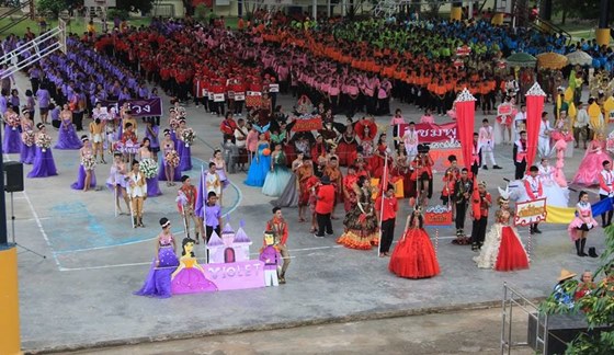 (10) อะไร คือ ความเว่อร์ที่สุดของกีฬาสีปีที่ผ่านๆ มา >> ขบวนพาเหรดเว่อร์ทุกสี โรงเรียนรัตนบุรี ประกอบด้วย 6 คณะสีคือ สีฟ้า สีเขียว สีแสด สีแดง สีม่วง และสีชมพู