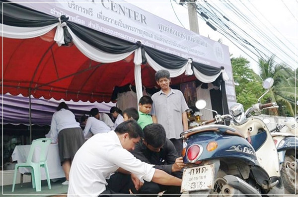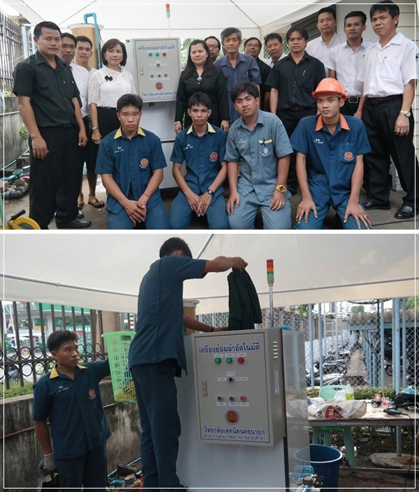 ชาววิทยาลัยเทคนิคนครนายก ใช้เครื่องย้อมผ้าอัตโนมัติ ให้บริการย้อมผ้าดำฟรี พร้อมเปิดบริการซ่อมแซมรถจักรยานยนต์ และเครื่องใช้ไฟฟ้าอีกด้วย