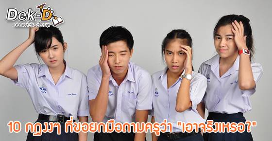 กฎหลายข้อถึงจะแปลกจริง แต่ก็ยังมีเหตุผลมารองรับได้นะคะ ผิดกับกฎที่ตั้งขึ้นมาแบบงงๆ ต่อให้นอนตีลังกาคิดเป็นสิบตลบ ก็ยังคิดไม่ออก ว่าเกิดขึ้นมายังไง? ไม่รอช้า ตามไปดู 10 กฎชวนงง ที่ขอยกมือถามครูว่า เอาจริงเหรอ? กันเลย!