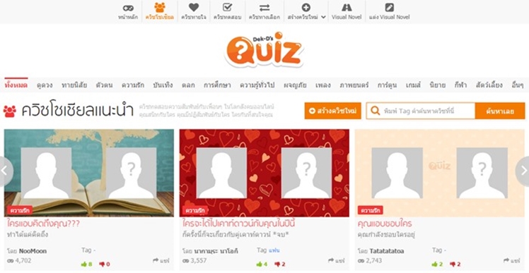 เปิดตัวควิซโซเชียล เล่นง่ายสร้างง่ายสุดๆ นับเป็นควิซล่ามาแรงมากของเว็บ Dek-D โดยควิซโซเชียลจะให้คุณสนุกไปกับเพื่อนๆ บนโซเชียล มีระบบการสร้างคงิซที่ง่าย เล่นง่าย ลองแล้วจะติดใจ