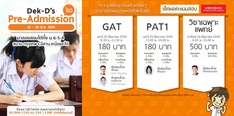 เป็นครั้งแรกที่เด็ก ม.ปลาย จะได้ลองข้อสอบจริง บรรยากาศสนามสอบจริง ซึ่งเราได้ทำการจำลองบรรยากาศการสอบให้ผู้เข้าสอบได้สัมผัสก่อนลงสนามสอบแอดมิชชั่นจริงไว้ในกิจกรรม Dek-D's Pre-Admission เพื่อสร้างความมั่นใจในการสอบแอดมิชชั่น ช่วยให้ผู้เข้าสอบสามารถวิเคราะห์จุดด้อยของตนเอง เพื่อนำไปแก้ไขก่อนเข้าสู่สนามสอบแอดมิชชั่นจริง พร้อมทั้งสามารถวัดระดับความสามารถ เมื่อเทียบกับผู้เข้าสอบท่านอื่นๆ ได้ด้วย โดยมีผู้เข้าสอบทั้งวิชา GAT, PAT1 และวิชาเฉพาะแพทย์ รวมทั้งสิ้นกว่า 20,000 คน และจะจัดขึ้นอีกครั้งเร็วๆ นี้
