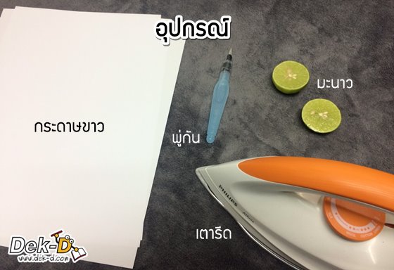 ขั้นตอนแรก เตรียมกระดาษเปล่ามา และใช้พู่กันจุ่มลงในน้ำมะนาว (ขั้นตอนนี้จะบีบใส่ถ้วยก็ได้นะคะ แต่พี่มิ้นท์เน้นเอาสะดวกคือ จิ้มลงในลูกมะนาวเลย^^) และนำมาเขียนข้อความที่ต้องการ จะสารภาพรักหรือสารภาพผิดก็จัดไปเลยจ้า