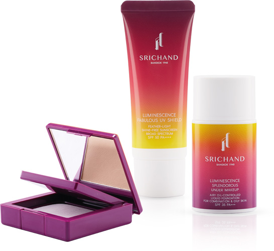 ศรีจันทร์ ขอแนะนำ ชุดผลิตภัณฑ์ความงามใหม่ล่าสุด “Srichand Luminescence Series” ชุดผลิตภัณฑ์เครื่องสำอางที่เหมาะสำหรับผิวมันและผิวผสม สำหรับการใช้ระหว่างวัน ที่ช่วยปกป้องผิวของคุณตั้งแต่เช้าจรดเย็น เนื้อสัมผัสบางเบา และควบคุมความมันอย่างดีเยี่ยม เพื่อเผยผิวสวยที่แลดูเรียบเนียนอย่างเป็นธรรมชาติ จึงมีแรงบันดาลใจในการออกแบบจากสีของแสงอาทิตย์ยามเช้าและเย็น โดยในชุดผลิตภัณฑ์นี้ ประกอบไปด้วยผลิตภัณฑ์ความงามที่ตอบโจทย์อย่างครอบคลุม Srichand Luminescence Fabulous UV Shield (390 บาท), Srichand Luminescence Splendorous Under Makeup (490 บาท), และ Srichand Luminescence Glowing Brilliance Perfecting Powder (590 บาท)