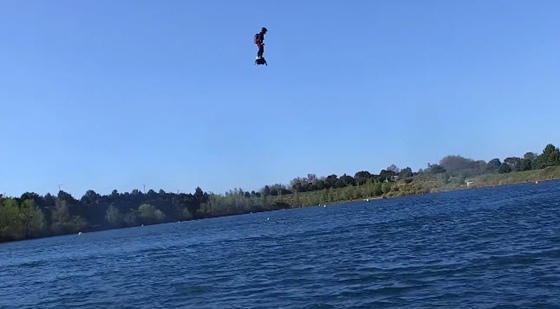 สำหรับสถานที่จัดทดสอบจริง จัดขึ้นที่แถบชายฝั่งทางตอนใต้ของฝรั่งเศส เมื่อเมษายนปีที่แล้ว โดย Flyboard Air ของเขา ขึ้นบินได้สูงสุดถึง 10,000 ฟุต และทำความเร็วได้สูงสุด 150 กิโลเมตร/ชั่วโมงเลยทีเดียว แถมยังบินหมุนซ้าย ขวา ได้ด้วย แต่ช่วงที่แฟรงกี้ทำการทดลองและคว้าสถิติ เขาใช้ความเร็วเฉลี่ยที่ 55 กิโลเมตร/ชั่วโมง และทำลายสถิติเดิมในเวลาเพียง 3 นาที!