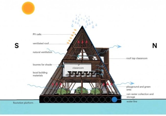 ทางกลุ่มสถาปนิกต้องการออกแบบโรงเรียนที่สามารถทนต่อสภาพอากาศที่รุนแรงของประเทศไนจีเรีย และรวมไปถึงการทนต่อเรื่องคลื่นและกระแสน้ำได้ถึงแม้ว่าจะต้องลอยอยู่ในน้ำท่วมยาวนานถึง 4 เดือนติดต่อกันก็ตาม