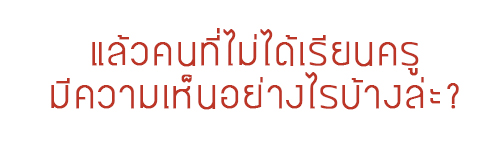 แล้วฝั่งคนที่ไม่ได้เรียนครูมาล่ะ เค้ามองเรื่องนี้กันอย่างไรบ้าง? จากการที่ได้ฟังความคิดเห็นของคนที่ไม่ได้เรียนครู หลายคนบอกว่า “นโยบายนี้ถือว่าเป็นการเปิดโอกาสมากขึ้น” เพราะว่าหลายคนก็อยากที่จะเป็นครู แต่ไม่สามารถสอบเข้าคณะครุฯ-ศึกษาฯ ได้ตั้งแต่แรก และเหตุผลที่มาสมัครสอบครู เพราะว่าพวกเขาก็อยากเป็นครูเหมือนกัน และอยากให้เปิดใจ อยากให้วัดที่ผลงาน ความรู้ ความสามารถมากกว่า อีกทั้งหลายคนยังยกตัวอย่างอีกว่า ในสถาบันติวเตอร์หลายแห่งที่เด็กนักเรียนแห่แหนไปเรียนกัน ส่วนใหญ่ก็ไม่ได้เรียนจบครู แต่กลับมีความเชี่ยวชาญและสามารถถ่ายทอดความรู้ให้กับนักเรียนอย่างเข้าใจ และก็มีความสามารถมากๆ การที่เด็กๆ ไปเรียนกับติวเตอร์ที่ไม่ได้จบครู ก็น่าจะบ่งบอกอะไรได้หลายๆ อย่าง ดังนั้นเราไม่ควรมากีดกันกันเอง เพราะทำแบบนั้น ประเทศก็จะไม่เกิดการพัฒนาสักที