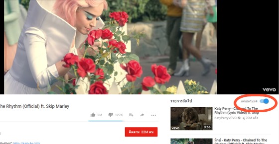 ถ้าน้องๆ อยากจะฟังเพลงคลอๆ ในระหว่างทำงาน หรือในขณะที่เล่นเว็บอื่นไปด้วย เช่นกำลังอ่านนิยายในเว็บ Dek-D เพลินๆ แล้วไม่อยากกลับมาเปิดหน้า Youtube เพื่อเลือกเพลงบ่อยๆ น้องๆ ก็แค่ปล่อยให้มันเล่นเพลงหรือคลิปอื่นต่อไปเรื่อยๆ โดยเปิดปุ่มเล่นอัตโนมัติ (auto play) ให้เป็นสีฟ้า แค่นี้ยูทูบมันก็เล่นคลิปในหมวดหมู่เดียวกัน รันไปเรื่อยๆ แบบอัตโนมัติ ไม่ต้องอัตโนมือให้เมื่อยนิ้วกันเเล้ว