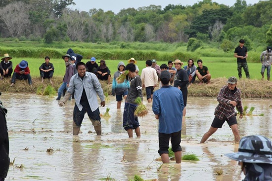 เรื่องมีอยู่ว่า เมื่อวันที่ 2 กรกฎาคมที่ผ่านมา “คณะเกษตรศาสตร์และเทคโนโลยี มหาวิทยาลัยเทคโนโลยีราชมงคลอีสาน วิทยาเขตสุรินทร์” ได้จัดกิจกรรมรับน้องแบบสร้างสรรค์ พี่ๆ พร้อมด้วยอาจารย์แต่ละสาขาลงไม้ลงมือ!! พารุ่นน้องหน้าใหม่ไป “ลงแขกดำนา” ณ บริเวณอ่างน้ำตา ซึ่งเป็นอ่างเก็บน้ำของมหาวิทยาลัย โดยเมล็ดข้าวที่นำมาปลูก คือ ข้าวอินทรีย์ ไม่มีสารเคมีตกค้าง เหตุผลหลักเพราะทางมหาวิทยาลัยกำลังรณรงค์เรื่องการปลูกข้าวชนิดนี้อยู่นั่นเอง