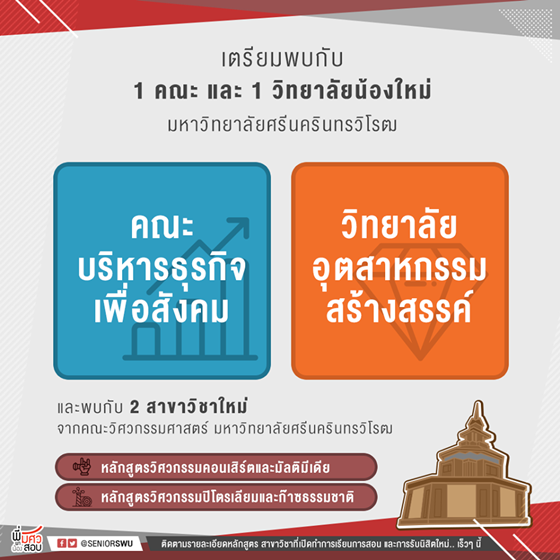 มหาวิทยาลัยศรีนครินทรวิโรฒ หรือ มศว เตรียมเปิดการเรียนการสอน 1 คณะ 1 วิทยาลัย และ 2 สาขาวิชาเพิ่มเติม ได้แก่