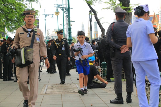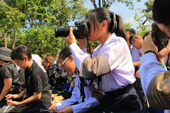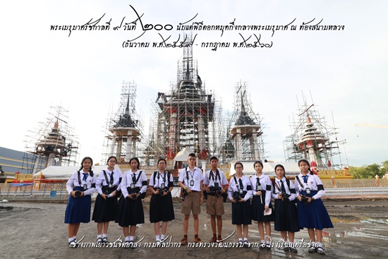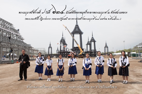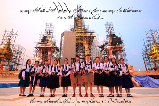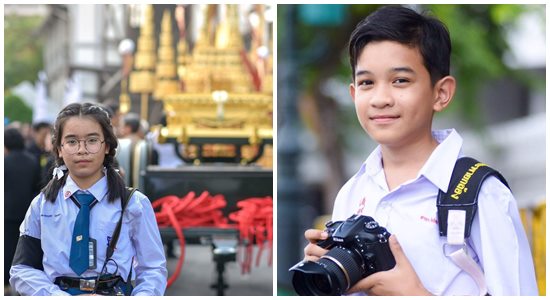 กลุ่มเด็กหลังเลนส์เล่าให้ฟังว่า "พวกเรามาทำงานนี้ในฐานะ 'ช่างภาพเยาวชนจิตอาสาของกรมศิลปากร' ค่ะ เราจะได้ทราบหมายกำหนดจากกรมศิลปากรที่เขามาเชิญสื่อมวลชนทำข่าวความคืบหน้า หลักๆ พวกเราจะเน้นถ่ายความคืบหน้าการสร้างพระเมรุมาศกลางท้องสนามหลวงฝั่งทิศใต้ ตั้งแต่ตอนยังเป็นลานโล่ง จนเริ่มมีหมุดทั้ง 9 จุด เริ่มมีเสาเอกต่อมาเรื่อยๆ การกดชัตเตอร์แต่ละครั้งเราจะเลือกมุมที่เล่าเรื่องได้"