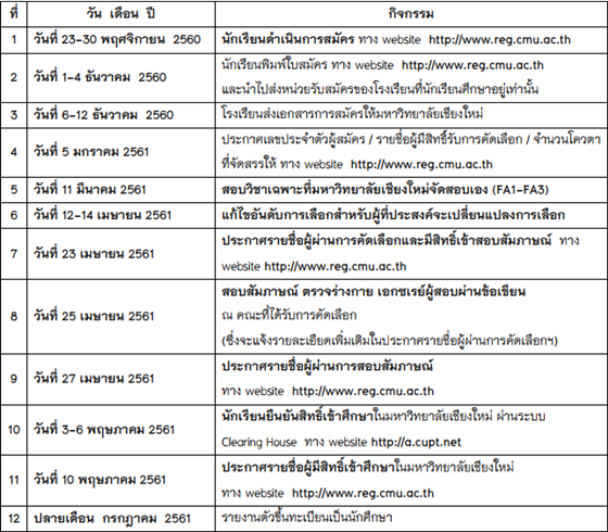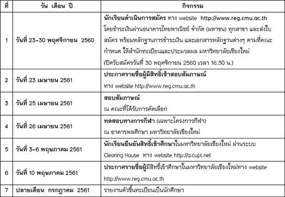 โดยมหาวิทยาลัยเชียงใหม่จะเปิดรับสมัครในวันที่ 23 – 30 พฤศจิกายน 2560 เพียง 8 วันเท่านั้น