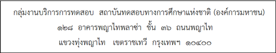 --การสมัครสอบจะเสร็จสมบูรณ์เมื่อดำเนินการตามขั้นตอนอย่างครบถ้วนและอยู่ในระยะเวลาที่ สทศ. กำหนด หากมีปัญหาให้รีบติดต่อ สทศ. ทันที –