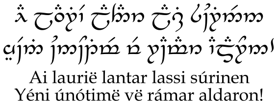 โทลคีนจริงจังกับภาษาเควนยามาก เรียกได้ว่าเป็นภาษาที่สมบูรณ์ที่สุดที่เขาเคยสร้างขึ้นเลยก็ว่าได้ เขาได้สร้างตัวอักษรและไวยากรณ์สำหรับภาษาเควนยา ภายหลังได้กลับมาทำงานที่มหาวิทยาลัยอ๊อกซ์ฟอร์ดอีกครั้ง โทลคีนได้ทำการปรับปรุงแก้ไขและใช้ภาษานี้ในการเขียนบันทึกประจำวันทุกวันด้วยค่ะ ตัวอย่างของประโยคในภาษาเควนยาก็เช่น "Elen sila lûmenn' omentielvo” หมายถึง ดาวฤกษ์ส่องสว่างในเวลานัดพบของเรา