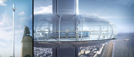 สิ่งๆ นี้มีชื่อว่า British Airways i360 ไม่ใช่เครื่องบินนะคะ แต่จริงๆ แล้วเป็นธีมที่ไว้ใช้เรียกกระเช้าไฟฟ้า นอกจากจะชื่อเหมือนสายการบินแล้ว ก็ยังเรียกการให้บริการแต่ละเที่ยวว่า "ไฟล์ท" อีกด้วย เป็นกระเช้าไฟฟ้าในแนวดิ่งที่มีความสูงถึง 162 เมตร (เทียบเป็นตึกก็ราวๆ 40 กว่าชั้น) นับได้ว่าเป็นกระเช้าไฟฟ้ากลางอากาศตัวแรกของโลก ตั้งอยู่ที่เมืองไบรตัน สถานที่พักตากอากาศริมชายฝั่งทะเลตอนใต้ของประเทศอังกฤษ ทีมวิศวกรที่สร้างเจ้า British Airways i360 ก็เป็นทีมเดียวกับที่สร้างลอนดอนอาย ชิงช้าสวรรค์ที่สูงที่สุดในทวีปยุโรปด้วย เรียกว่ามาสร้างสีสันและเป็นจุดดึงดูดนักท่องเที่ยวให้มาชายหาดแห่งนี้มากขึ้นด้วย
