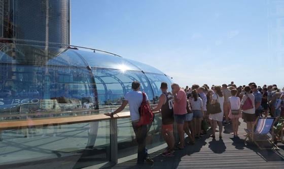 ด้านนอก British Airways i360 นักท่องเที่ยวกำลังรอขึ้นไฟล์ทสุดพิเศษนี้