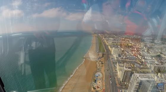 เริ่มต้นของการท่องเที่ยวชมวิวรูปแบบใหม่นี้ จะมารอรับผู้โดยสารที่ด้านล่าง หลังจากปิดประตูเรียบร้อย ตัวหอคอยจะค่อยๆ พาห้องโดยสารขึ้นไปด้านบนตามแนวดิ่ง ใช้เวลาขึ้นไปประมาณ 10 นาทีก็จะถึงจุดสูงสุดของหอคอย ไม่ว่าจะอยู่มุมไหนของกระเช้านี้ก็จะได้เห็นวิวเมืองริมหาดและท้องทะเลสุดลูกหูลูกตา ซึ่งเค้าประมาณการเอาไว้ว่า ในวันที่ท้องฟ้าโปร่ง จะมองเห็นได้ไกลถึง 42 กิโลเมตรเลยทีเดียว ความพีคของกระเช้าไฟฟ้าก็ส่วนหนึ่ง แต่อีกส่วนก็ต้องยกให้กับวิวค่ะ เพราะตั้งอยู่ริมหาด ที่ได้เห็นทั้งท้องฟ้า ทะเล ท่าเรือ อีกด้านก็เป็นตัวเมือง หากเดินครบ 1 รอบ ก็ได้เห็นวิวทุกอย่าง