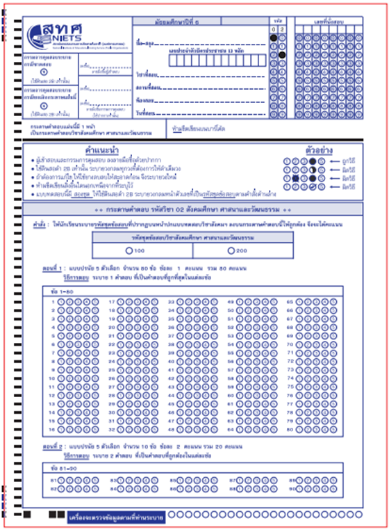 กระดาษคำตอบวิชาสังคมศึกษาฯ