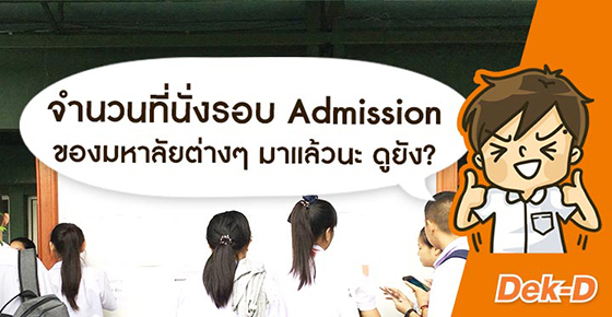 ปกติแล้วในการสมัครรอบ Admission หลายๆ มหาวิทยาลัยจะเปิดรับสมัครในจำนวนที่ค่อนข้างมาก แต่ในปีนี้บรรดาจำนวนที่นั่งตกไปอยู่ในรอบอื่นๆ ค่อนข้างมาก ทำให้การรับสมัครในรอบ Admission น้อยลง แต่ก็ไม่ต้องกังวลไป เพราะยังสามารถเลือกได้ 4 อันดับเหมือนเดิม ถ้าวางแผนดีดี ก็มีที่เรียนแน่นอนค่ะ