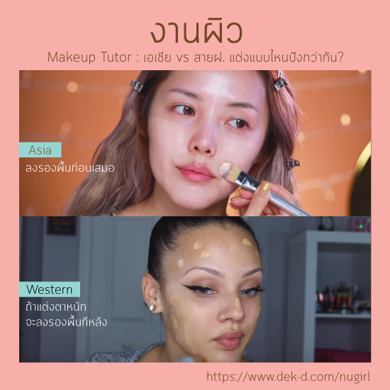 ถ้าสาวๆ เป็นคนนึงที่ชอบดู How to ของยูทูปเบอร์ต่างชาติล่ะก็ จะสังเกตได้เลยค่ะว่าสาวๆ เอเชียกับสาวฝรั่ง มีความแตกต่างในการแต่งหน้าอยู่มาก ไม่ใช่แค่สไตล์การแต่งอย่างเดียว แต่รวมไปถึงขั้นตอนในการลงเมคอัพอีกด้วยแหละ ซึ่งก็ถือว่าเป็นเทคนิคที่น่าสนใจ และมีข้อดีข้อเสียต่างกันไปค่ะ แต่บอกก่อนนะคะว่าอาจจะไม่ใช่ทุกคนที่ทำ แต่เป็นส่วนใหญ่ที่พี่โอ๊ตสังเกตได้ เลยหยิบมาเล่าให้ฟังกันค่ะ
