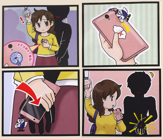 ทางกรมตำรวจได้ไซตามะ ได้ผุดไอเดียทำสติกเกอร์ "Anti-Chikan" เพื่อลดปัญหาพวกโรคจิตบนรถไฟ โดยให้ติดไว้ที่ด้านหลังโทรศัพท์ เขาได้อธิบายวิธีการใช้ว่า...