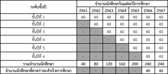 โดยในระยะแรก ทางวิทยาลัยฯ ได้วางแผนรับนักศึกษาปีละ 40 คน คาดว่าจะมีผู้สำเร็จการศึกษาในปีการศึกษา 2566 เป็นครั้งแรก