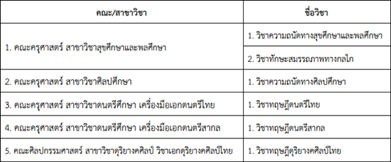 หมายเหตุ น้องๆ ที่สมัคร คณะครุศาสตร์ สาขาวิชาดนตรีศึกษา (เครื่องมือเอกดนตรีไทยและดนตรีสากล) และคณะศิลปกรรมศาสตร์ สาขาวิชาดุริยางคศิลป์ วิชาเอกดุริยางคศิลป์ตะวันตก จะต้องผ่านเกณฑ์วิชาเฉพาะทฤษฎีดนตรีตามที่สาขาวิชากำหนด จึงจะมีสิทธิ์สมัครสอบวิชาทักษะทางดนตรี