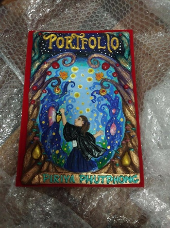 "พอร์ตโฟลิโอเล่มนั้น พิมพ์ตั้งใจไปยื่นสอบตรงสาขาออกแบบนิเทศศิลป์ คณะมัณฑนศิลป์ ม.ศิลปากรค่ะ ส่งทันเดดไลน์วันที่ 24 ม.ค. พอดีเลย" รู้สึกยังไงที่ยอดไลก์ยอดแชร์พุ่งขนาดนี้? "ตกใจมากกก ตอนแรกหนูตั้งใจตั้งเป็นแค่ Private ให้เห็นแค่เพื่อนๆ แต่เพื่อนบอกให้ช่วยเปิดแชร์หน่อย เราก็เลยเปิดให้ ไม่คิดว่าจะมีคนเข้ามาดูเยอะขนาดนี้ หลายคนก็ทักแชทมาถามว่าเราใช้อะไรทำปกพอร์ตฯ เล่มนี้"
