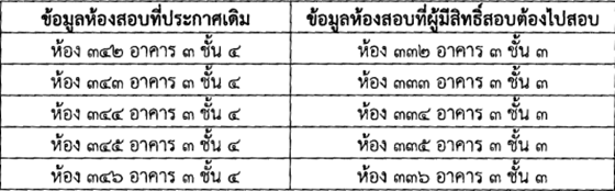 ในการสอบวันที่ 24 – 25 กุมภาพันธ์ มีการเปลี่ยนแปลงห้องสอบในวิชา ความถนัดทั่วไป (GAT) และความถนัดทางคณิตศาสตร์ (PAT 1) ในวันที่ 24 ก.พ. และความถนัดวิทยาศาสตร์ (PAT 2) และวิชาความถนัดทางวิชาชีพครู (PAT 5) ในวันที่ 25 ก.พ. ดังต่อไปนี้