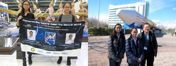 ไอซี : ในปีนั้นหนูกับพี่ไอเดียได้ไปดูนิทรรศการเกี่ยวกับอวกาศของ NASA ซึ่งมาจัดแสดงที่เมืองไทยเป็นครั้งแรก ในนิทรรศการมีเรื่องเกี่ยวกับการใช้ชีวิตในอวกาศ การกิน เสื้อผ้าของนักบิน เราก็ชอบกันมาก เห็นนักบินอวกาศลอยไปลอยมา เราก็อยากจะไปอยู่อวกาศ และได้ลองทำกิจกรรมในสภาวะไร้แรงโน้มถ่วงดูบ้างค่ะ ก็ช่วยกันคิดออกมาหลายเรื่อง เรื่องใกล้ๆตัวที่เราสงสัยกันมานาน เลยลองส่งดู แล้วก็ส่งต่อเนื่องมาทุกปีเลยค่ะ