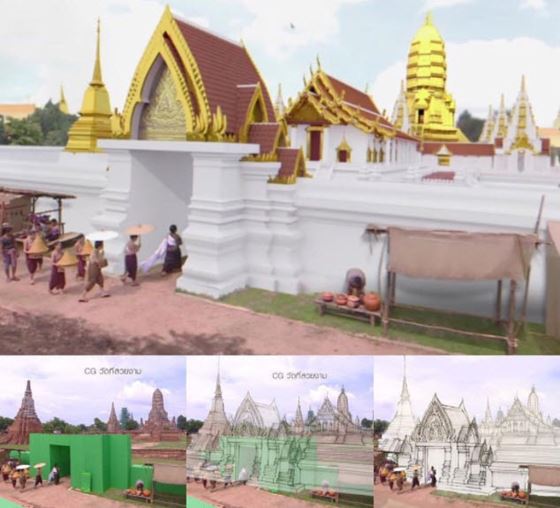 เทคนิค Green Screen หรือ Blue Screen ที่พูดถึง ก็คือ การเซ็ตฉากสีไว้ด้านหลัง เวลานำไปตัดต่อ ก็จะเอาส่วนของสีเขียวหรือสีฟ้าออกจากภาพ และนำฉากสมมติเข้าไปแทนที่นั่นเองค่ะ ซึ่งฉากสมมติตรงนี้ก็มีรายละเอียดในการสร้างค่อนข้างเยอะมาก ต้องมีแบบจำลอง สี แสงเงา ตำแหน่งพิกัดต่างๆ ต้องทำออกมาให้เป๊ะที่สุด
