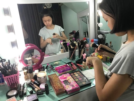 “การแต่งหน้าช่วยฝึกสมาธิได้มากเลยค่ะ โดยเฉพาะตอนเขียนคิ้วกับอายไลเนอร์ และทำให้ได้ฝึกจินตนาการ ครีเอตว่าอะไรควรแมทช์กับอะไร อย่างถ้าเป็นในคลิปสอนแต่งหน้า แพรจะดูตามเทรนด์ แล้วลองฝึกกับพี่ๆ บิวตี้บล็อกเกอร์ค่ะ เทรนด์ไหนกำลังมาพวกเค้าจะรู้หมด เราก็ไปดูเป็นแนวทาง”