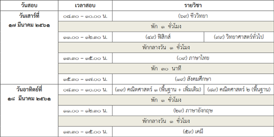 สำหรับ 9 วิชาสามัญ ถือเป็นการทดสอบที่สำคัญอีกชุดหนึ่งสำหรับน้องๆ ที่ต้องการสมัครสอบสายแพทย์ หรือบรรดาคณะที่เข้าร่วมกับทาง กสพท รวมไปถึงคนที่รอสมัครสอบในรอบโควตา หรือรับตรงทั่วไป เพราะมักจะกำหนดให้ยื่นคะแนน 9 วิชาสามัญ ในการพิจารณาคัดเลือกเป็นหลัก โดยปีการศึกษา 2561 นี้จะแบ่งการสอบออกเป็น 2 วัน ได้แก่ วันแรก ส.ที่ 17 มีนาคม สอบ 4 ช่วง 5 วิชา และวันที่สอง อา. ที่ 18 มีนาคม สอบ 3 ช่วง 4 วิชา