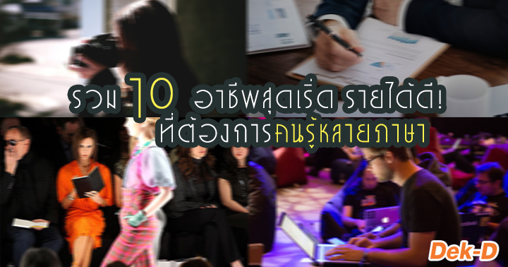 ทุกวันนี้รู้แค่ภาษาอังกฤษมันคงก็อาจจะไม่เพียงพอสำหรับการทำงานในบางสายอาชีพ ยิ่งเรารู้หลายภาษามากเท่าไหร่ เราก็จะยิ่งมีโอกาสในการทำงานในเครือข่ายที่กว้างมากขึ้น วันนี้ พี่วุฒิ เลยรวบรวม 10 อาชีพสุดเริ่ด รายได้ดี! ที่ต้องการคนที่รู้หลายภาษามาร่วมงาน มาฝากน้องๆ ชาว Dek-D.com มีอาชีพอะไรบ้าง เรามาดูกันเลยครับ