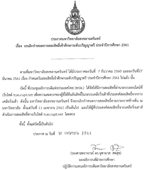 นอกจากนี้ยังได้ออกประกาศยกเลิกการสละสิทธิ์ กับทางมหาวิทยาลัย ซึ่งจะสามารถขอสละสิทธิ์ผ่านทางทปอ. ได้ค่ะ