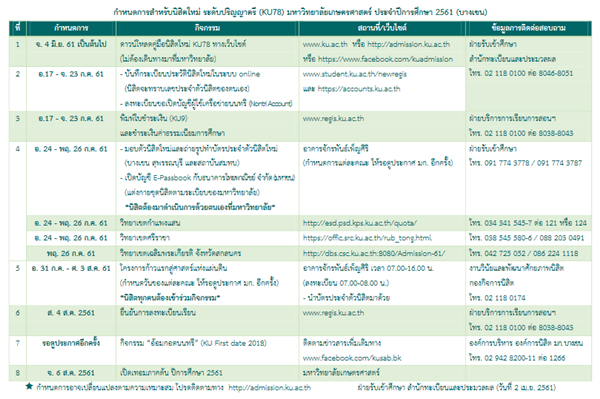 นอกจากนี้ทางมหาวิทยาลัยยังได้เปิดเผยกำหนดการล่วงหน้าสำหรับนิสิตใหม่ ประจำปีการศึกษา 2561 ไว้อีกด้วย