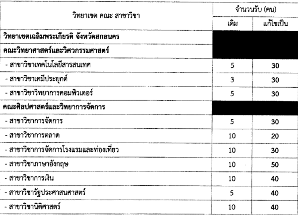 2. เพิ่มจำนวนรับ ของวิทยาเขตเฉลิมพระเกียรติ จังหวัดสกลนคร