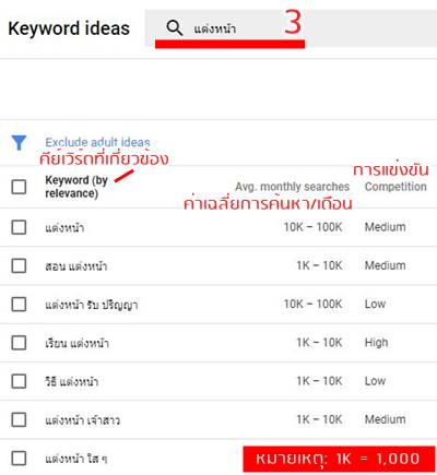 2. ใช้โปรแกรมค้นหาคีย์เวิร์ด ถ้าใครมี Google Account สามารถเข้าใช้งาน Keyword Planner ของ GoogleAdWords ได้ หรืออีกแอปฯ ที่แนะนำคือ kwfinder แต่มีข้อจำกัด ใช้ค้นหาได้วันละ 5 ครั้ง