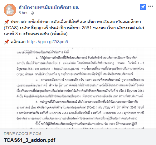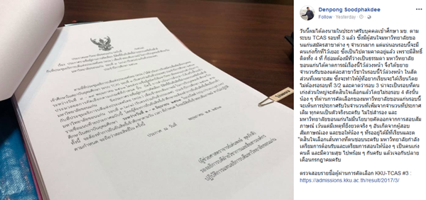 เมื่อเช้านี้พี่แนนนี่เห็นทาง แฟนเพจของมหาวิทยาลัยขอนแก่น ได้แชร์โพสต์ของเฟซบุ๊ก Denpong Soodphakdee หรือผู้ช่วยศาสตรจารย์เด่นพงษ์ สุดภักดี รองอธิการบดีฝ่ายวิชาการและสื่อสารองค์กร ปฏิบัติการแทนอธิการบดี มหาวิทยาลัยขอนแก่น ที่ระบุข้อความถึง "TCAS รอบ 3"
